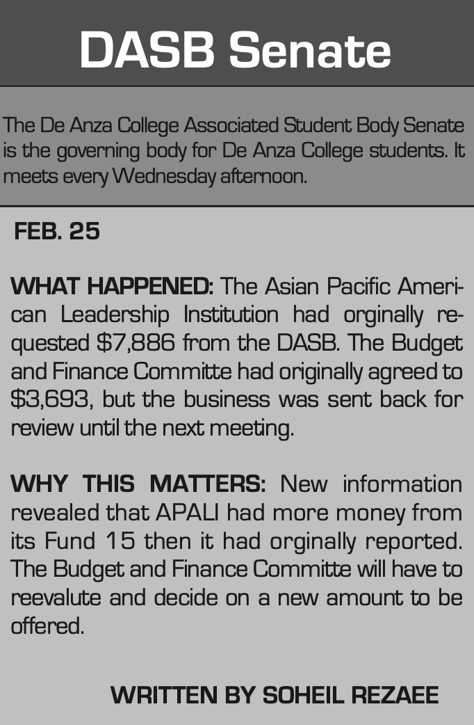 La Voz reports that De Anza's student government has cut funding for minority programs including APALI. Meanwhile, APASL and other student groups join a statewide protest in San Francisco and participate in a week-long protest on campus to raise awareness about budget cuts.