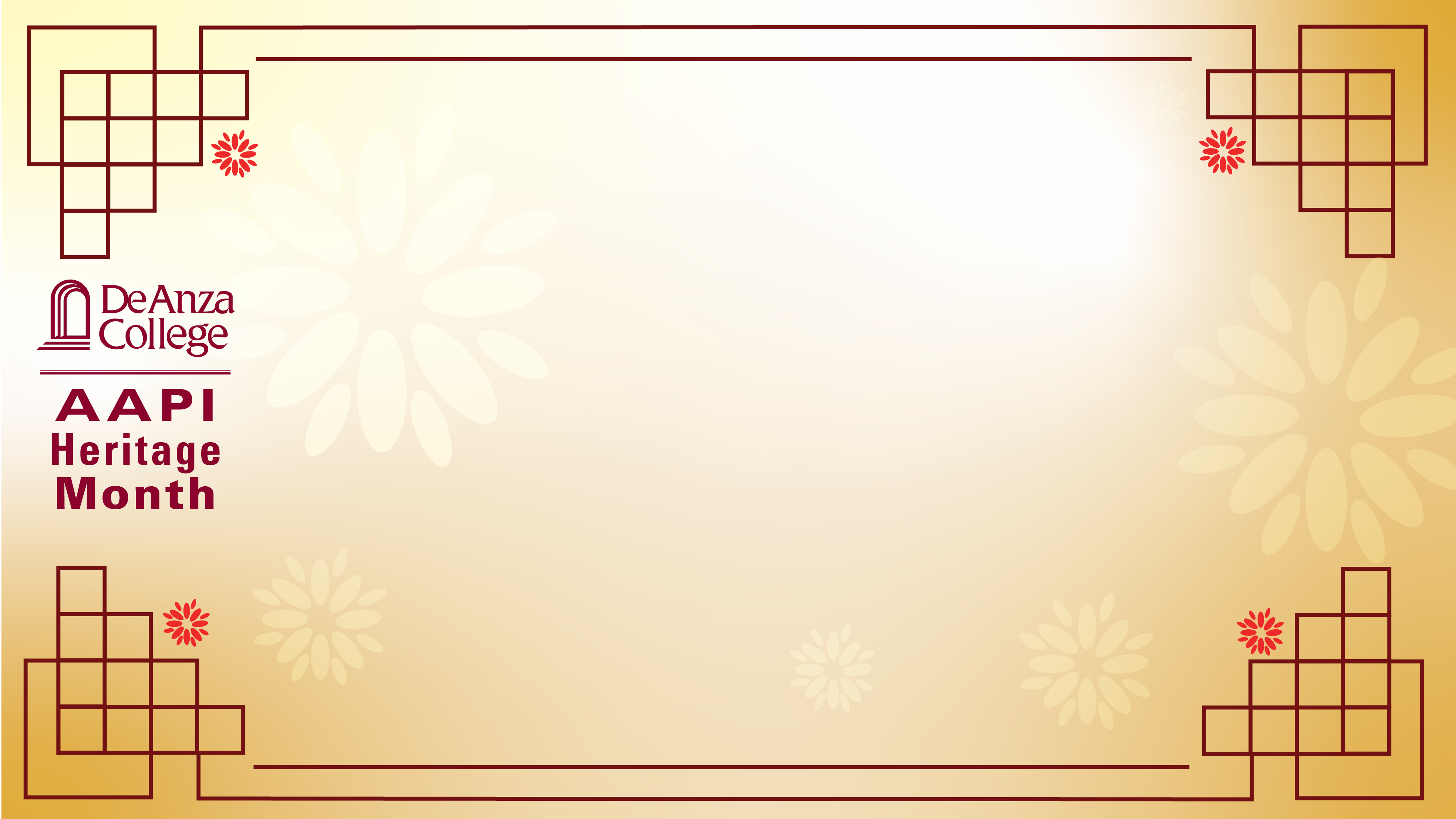 We're happy to provide these virtual backgrounds for use on Zoom videoconferences. These backgrounds include beautiful views and landmarks of the De Anza College campus, as well as backgrounds for use during heritage months.