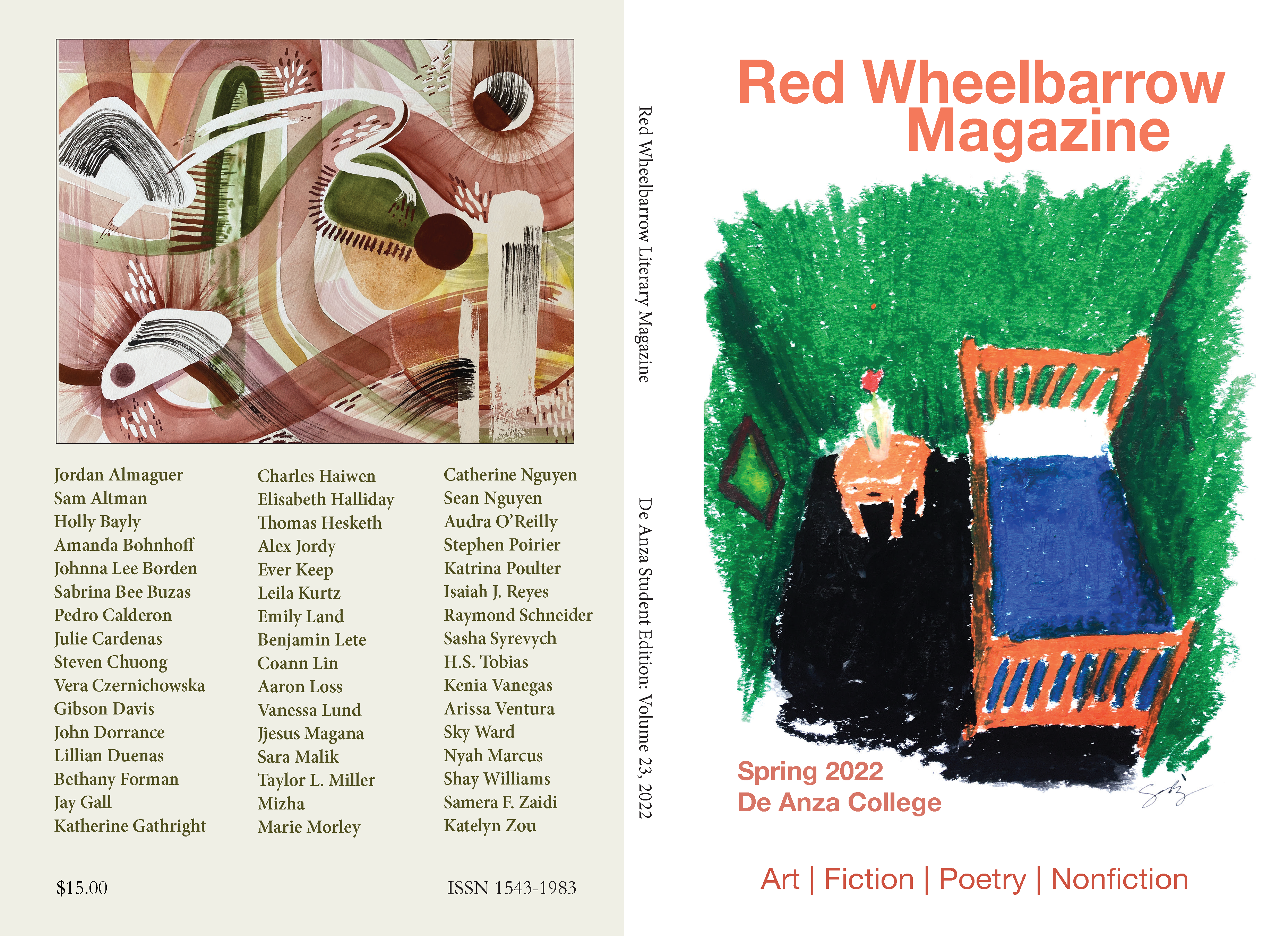 Enjoy the PDF for free and get a print version on campus from either the Language Arts Division office (for contributor's copies) or the De Anza Bookstore (for anyone who wants one, $15). You can also email weisnerken@deanza.edu or penkethmanJennifer@deanza.edu to order copies.