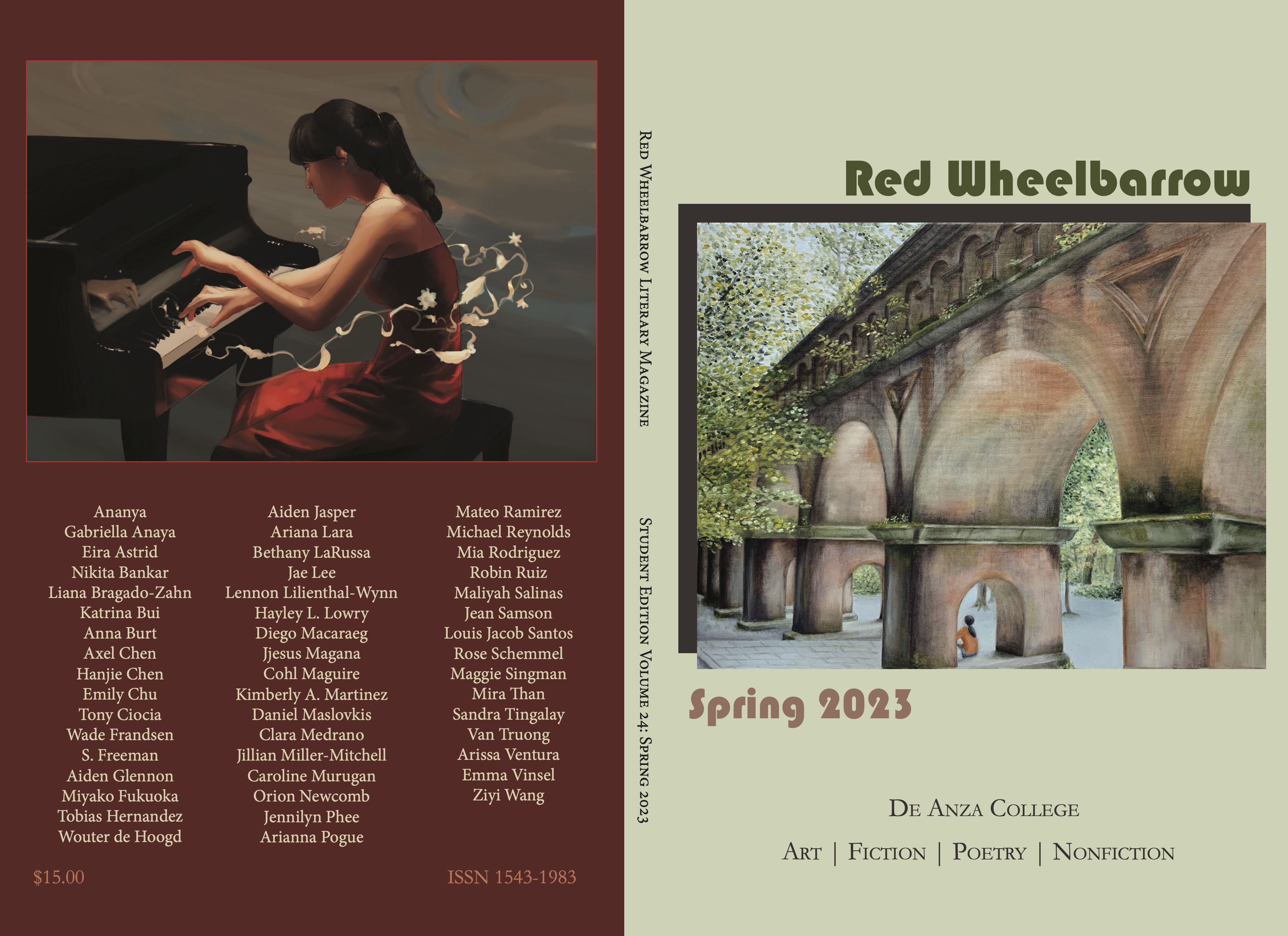The Red Wheelbarrow Student Edition is an annual student-edited literary magazine published each spring by De Anza student editors to showcase the best fiction, creative nonfiction, poetry, art and literary performance pieces produced by De Anza students during that academic year. Anyone who has taken a De Anza class during the current year is eligible to submit work. Submitted manuscripts are discussed and evaluated without editors knowing names of those submitting; editors are students in the spring quarter EWRT 68A/AX "Literary Magazine" editing course taught by Jennifer Penkethman.