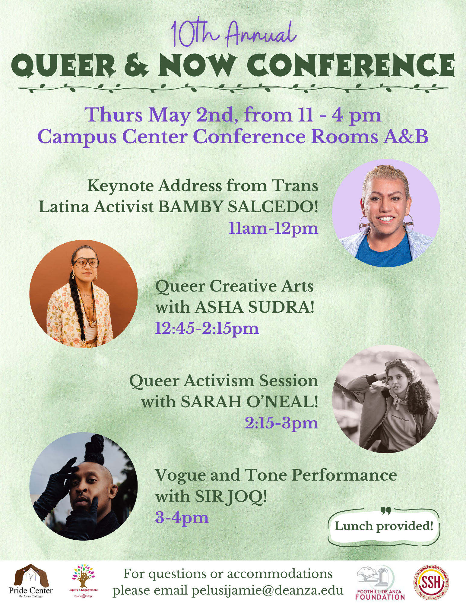 Co-sponsors for the 2023 Queer and Now Conference include the Pride Center, Foothill-De Anza Foundation, Office of Equity, Social Justice and Multicultural Education and the Social Sciences and Humanities Division.